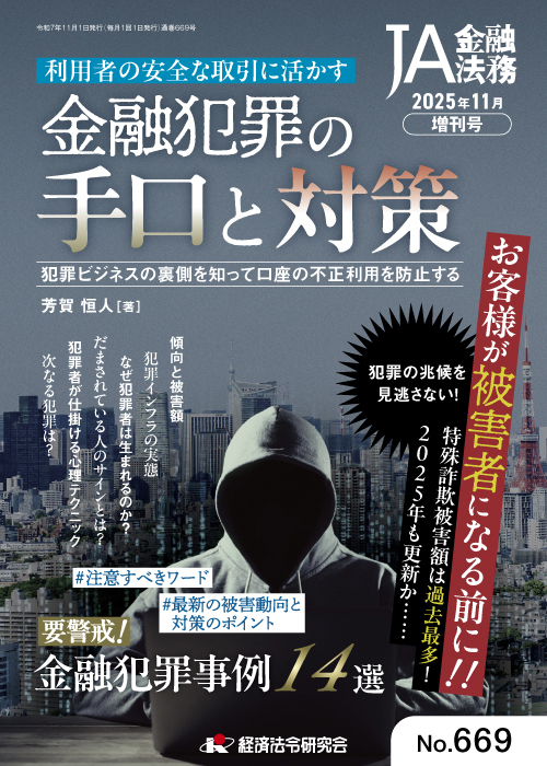 『JA金融法務』11月増刊号『利用者の安全な取引に活かす 金融犯罪の手口と対策』