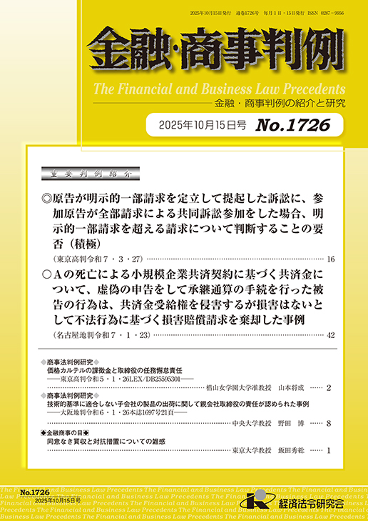 金融・商事判例No.1726(2025年10月15日号)では、