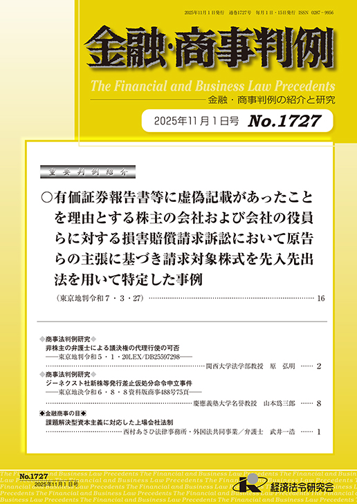 金融・商事判例No.1727(2025年11月1日号)では、