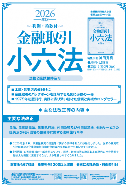 『金融取引小六法 2026年版』は、そうした実務と教育を静かに支える1冊として、現場に寄り添う存在となるでしょう。